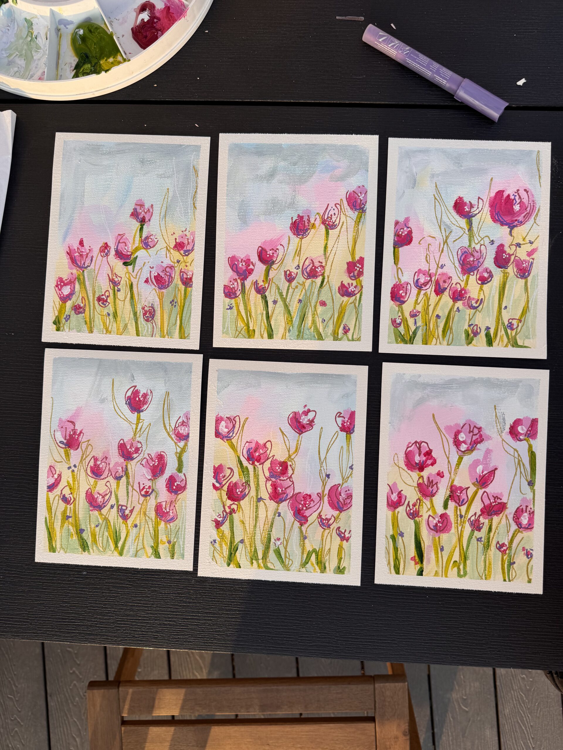 Ova originalna ilustracija cvijeća nastala je u spontanom kreativnom trenutku, uz igru boja, kistova i mirnog vremena posvećenog slikanju.